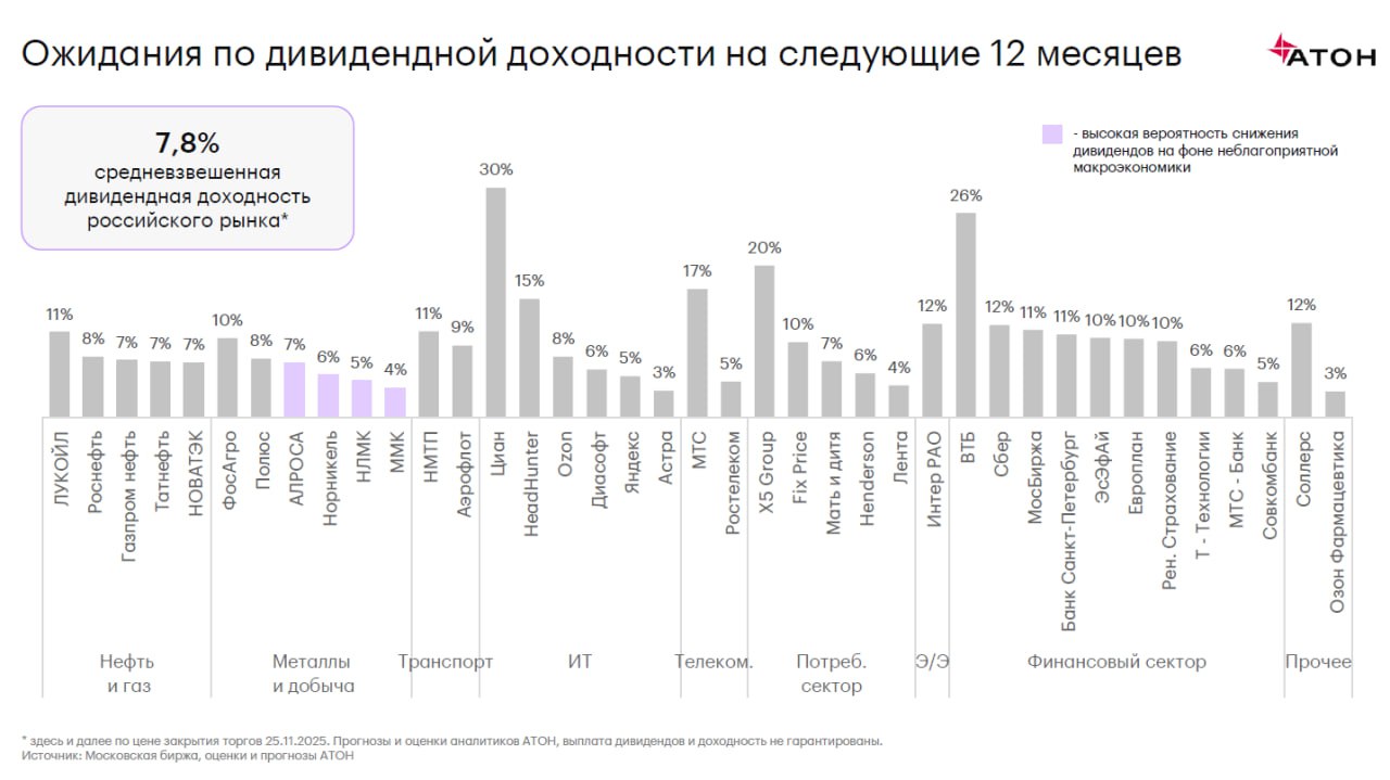 У нас с вами немало дивидендных бумаг. Вот что сейчас коллеги из АТОН от них ждут по дивидендам на 12 мес. вперед