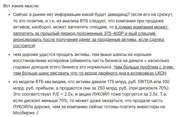 Исходя из новостей по Лукойлу, им похоже просто не разрешат продать активы, и фактически компания их теряет. Вместе с этим: