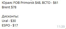 Свежие цифры по стоимости российской нефти. ESPO - сорт, который гонят Роснефть и Сургутнефтегаз на Восток.