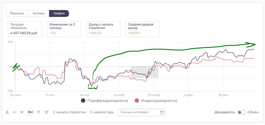 - портфель вырос на 14.9% от дна ноября (за это же время рынок +11%)